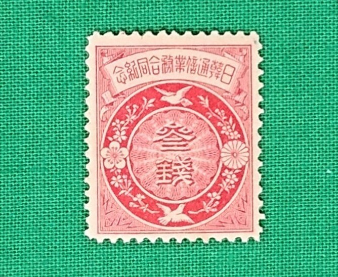- 日韓通信合同/3銭/明治38年/記念切手/経年美品/1905年/NH/小シミ/シワ無/糊艶良好/カタログ価格30,000円/№3479