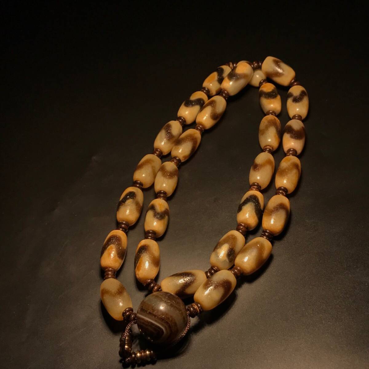 - 『館蔵珍品 瑪瑙製 細密彫 虎牙天珠仏珠ネックレス 根付 裝身具』稀少珍蔵品 古賞物 貴重物品 収蔵品 中国古美術 時代物 古董品
