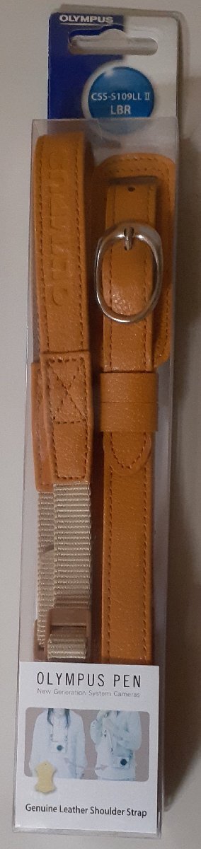 - 5985 未使用、未開封 OLYMPUS純正 本革ショルダーストラップ CSS-S109LL II LBR OLYMPUS PEN ライトブラウン