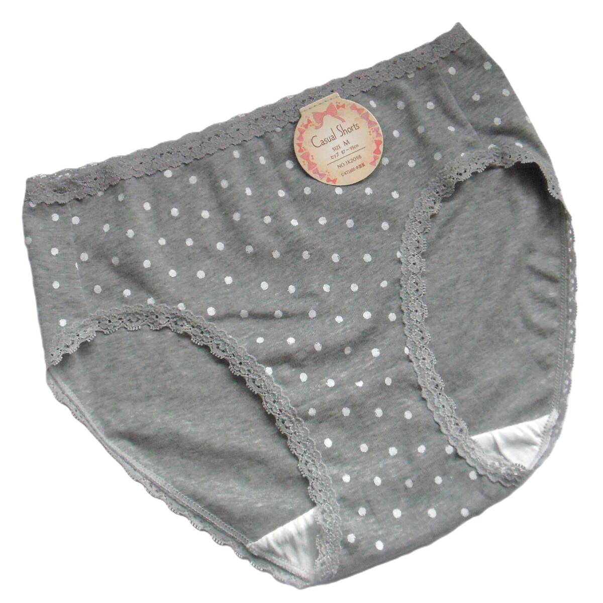 > Casual Shorts 水玉総柄×フラワーレース ショーツ M 綿100%柔らかな肌ざわり ドット模様 女の子にも パンツ グレー×ホワイト 新品タグ付