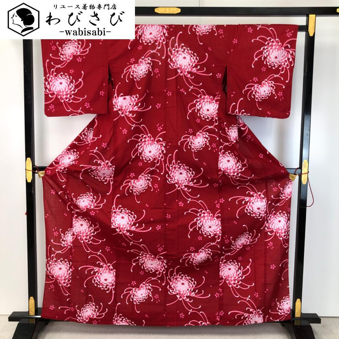 赤色のお色味に美しい乱菊の柄裄がデザインされた素敵なお品でございます。