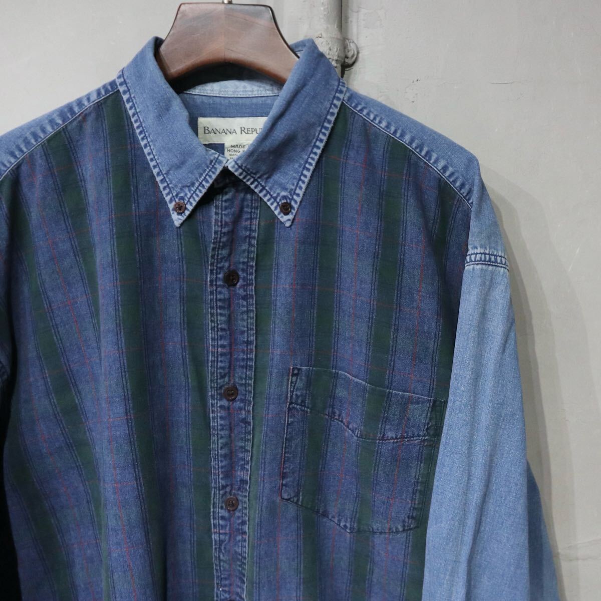 - 【即決】90s BANANA REPUBLIC バナナリパブリック バナリパ B.D ボタンダウンシャツ チェック柄 バイカラー 長袖 古着 L
