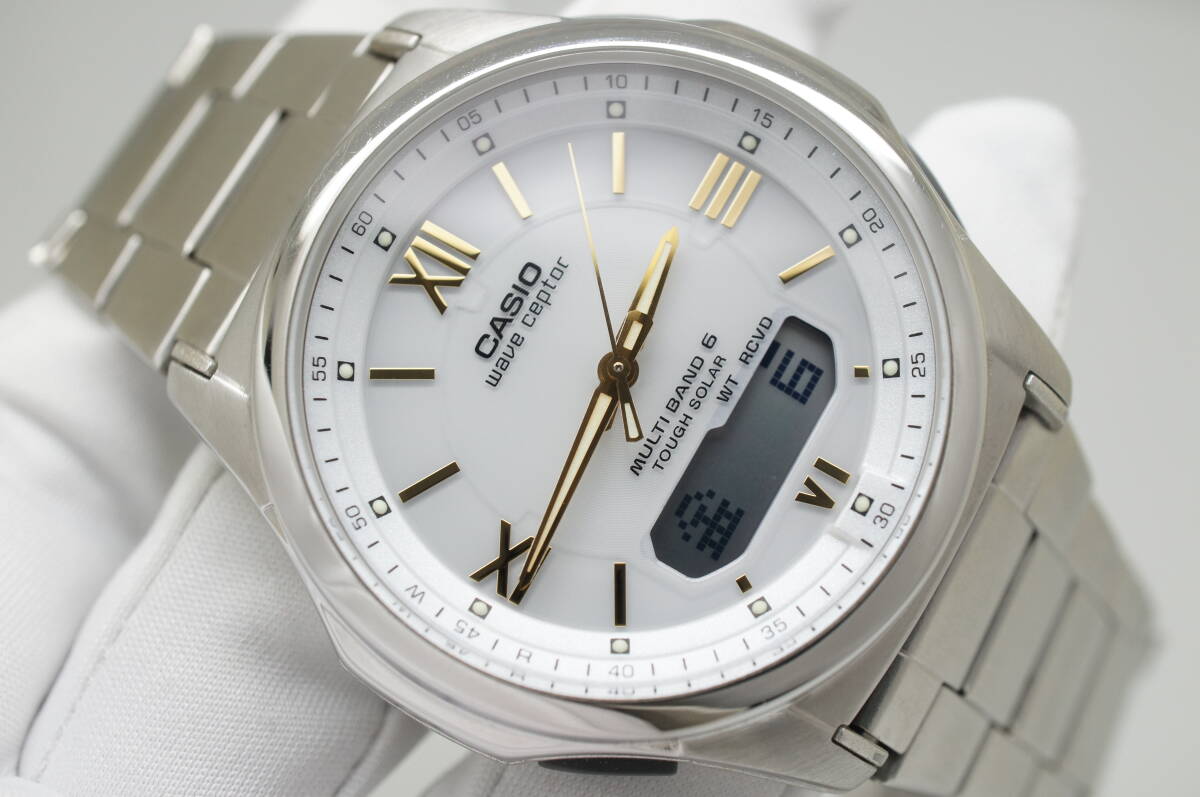 > W54●作動良好 CASIO カシオ wave ceptor ウェーブセプター WVA-M630 電波ソーラー マルチバンド6 アナデジ メンズ腕時計 シルバー お洒落