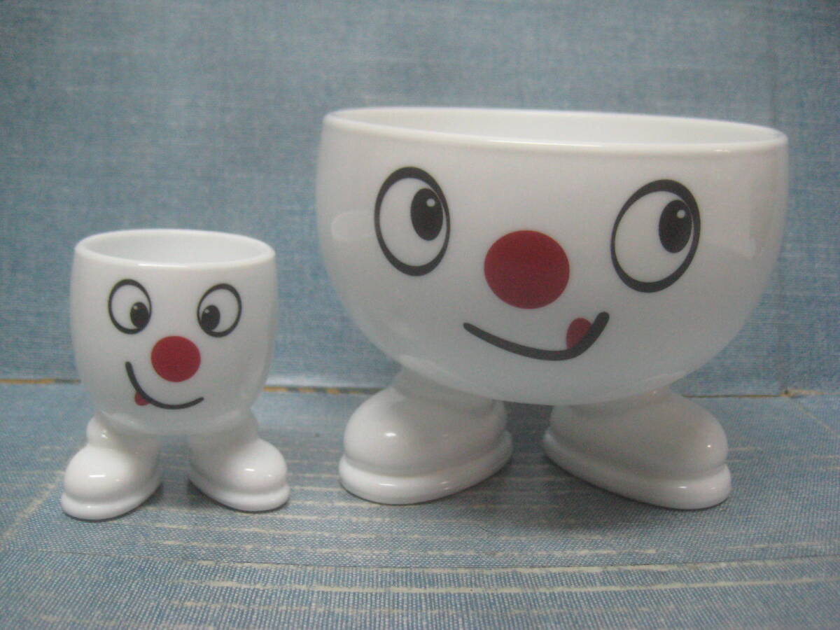 - ☆美品 ARC FRANCE オールドモデル 食器 フェイス柄 足つきボール エッグスタンド セット 希少 レア ① ☆