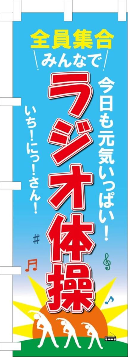 - のぼり旗「ラジオ体操 のぼり旗 朝日 ラジオ体操 幟旗 職場体操 夏休み 身体作り 健康体操イベント 運動不足解消」何枚でも送料360円!