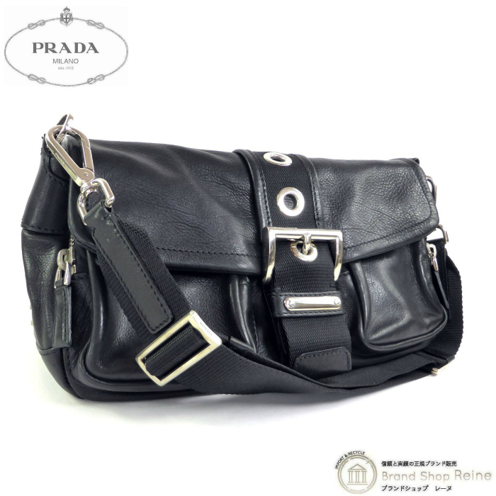 > プラダ (PRADA) フラップ ベルト オールレザー 2way クラッチ ショルダー バッグ ブラック ヴィンテージ(中古)