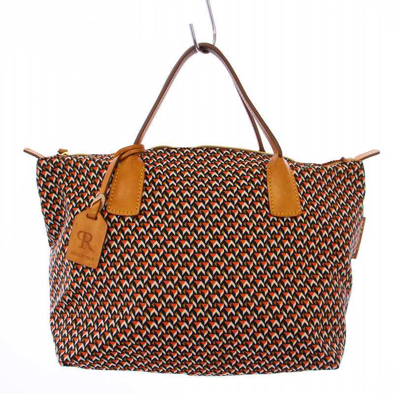 - ロベルタピエリ Roberta Pieri ハンドバッグ トートバッグ 総柄 ナイロン レザー オレンジ 黒 /BM レディース
