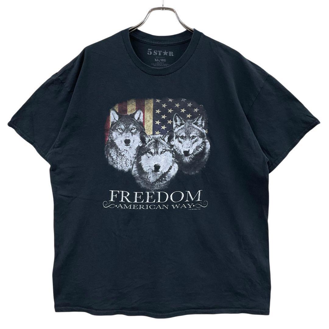 - 5スター Tシャツ XL アメリカンウルフ 星条旗 フリーダム 黒【4181】