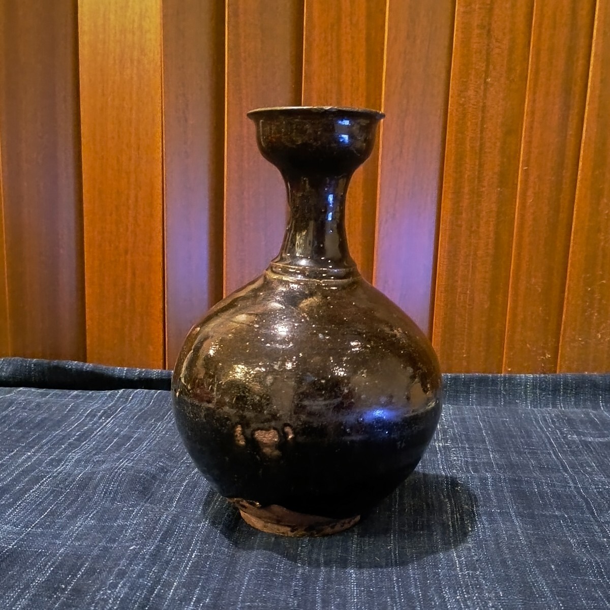 - 朝鮮美術 李朝 黒釉 徳利 盤口瓶 検) 朝鮮美術 花生け 古民芸 古道具 骨董 民芸 黒高麗 花器