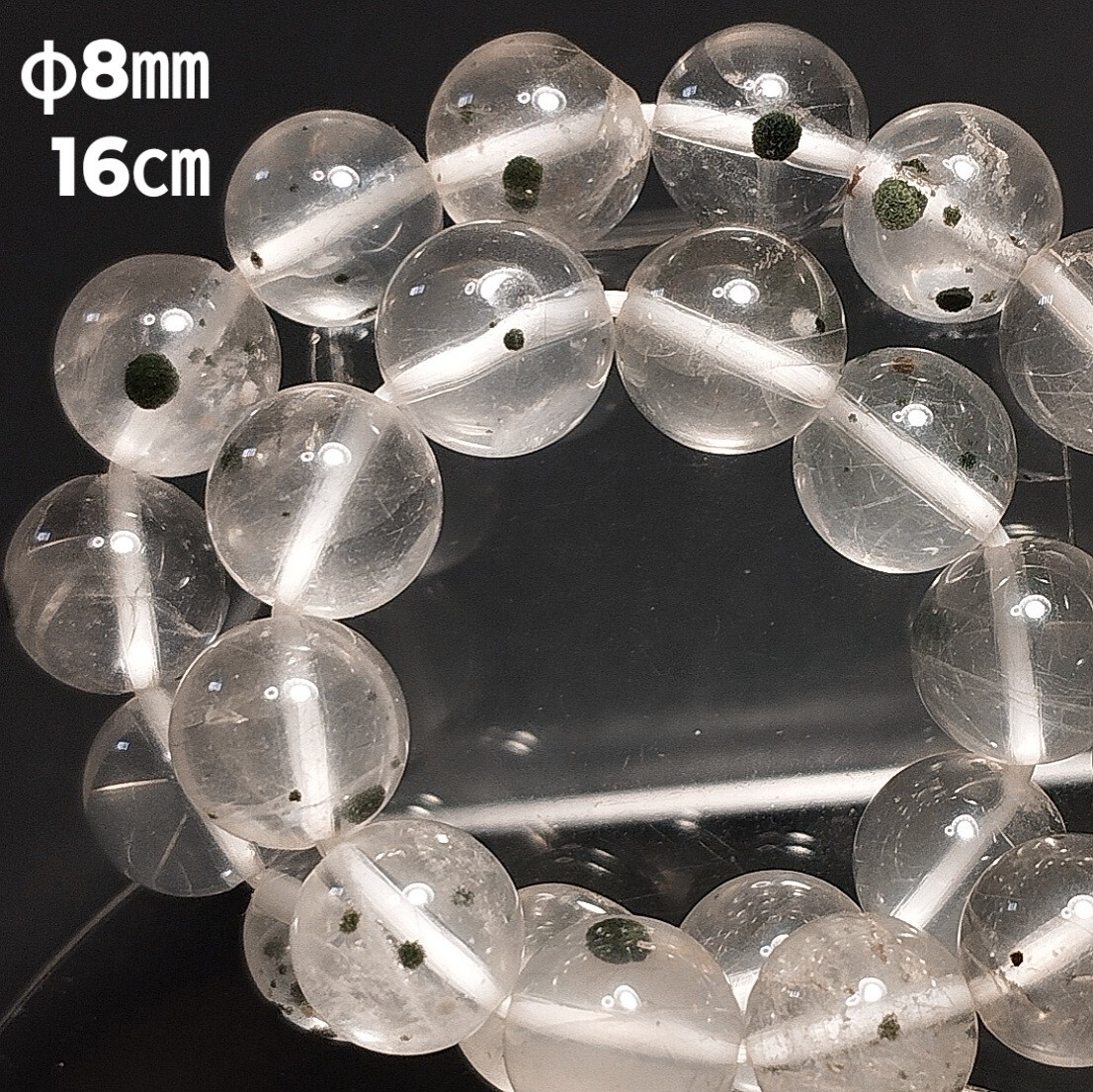 - ①希少 まりも水晶 ブレスレット 8㎜ 16㎝ クーカイトインクォーツ ウニ水晶 ホーランダイトインクォーツ ロマネサイトインクォーツ