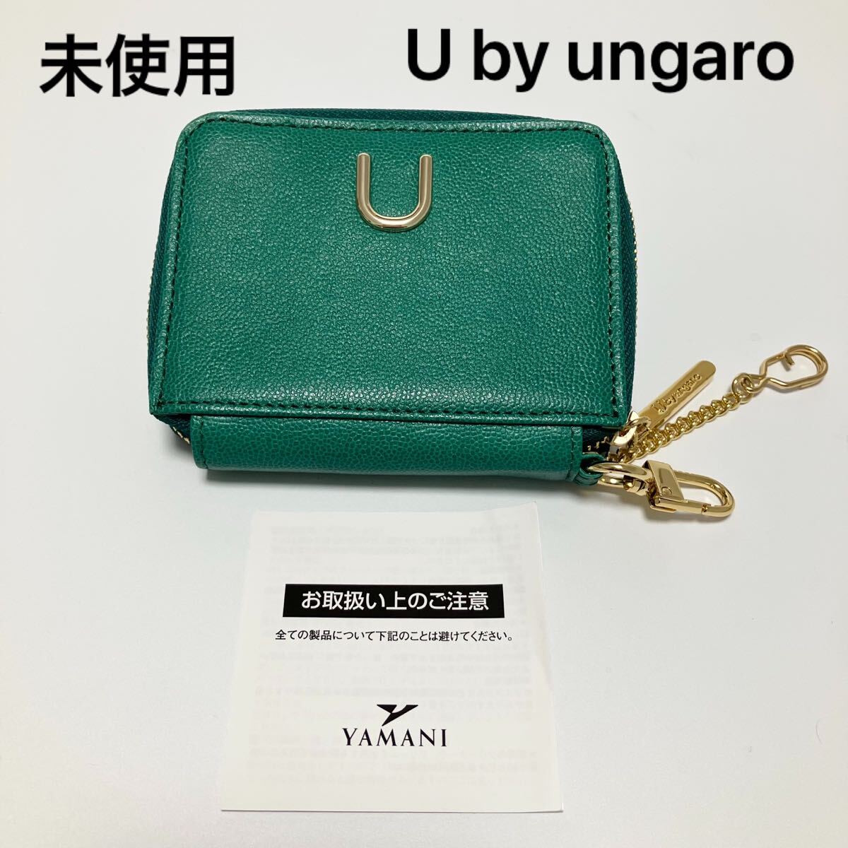 - D998 未使用 定価1.1万 ユーバイウンガロ ungaro キーケース 鍵入れ 本革 レザー ラウンドファスナー レディース グリーン