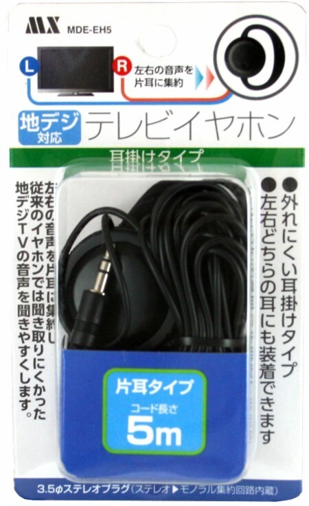 - 高音質★地デジ対応・耳掛けタイプTVイヤホン5m mde-eh5