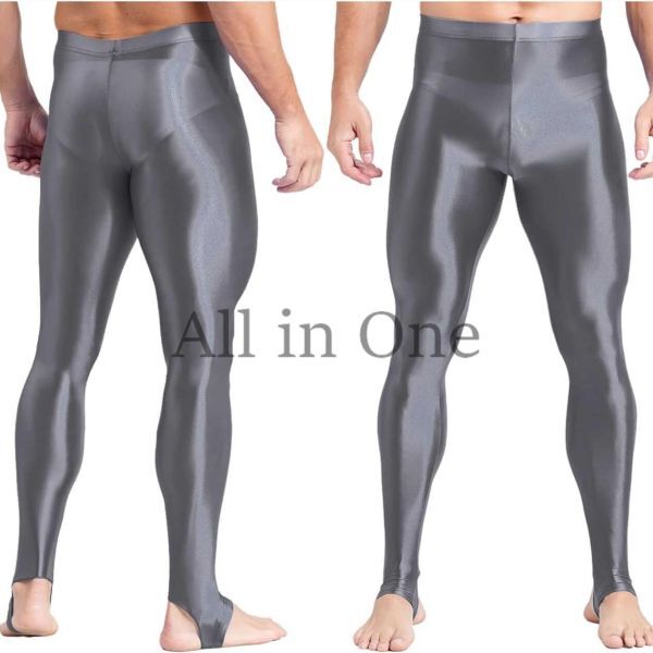 - 177-31-20 光沢 ツヤツヤ アンダーフット ストラップ【グレー,Lサイズ】男性 メンズ スポーツ レギンス コスプレ ジム ワークパンツ .2