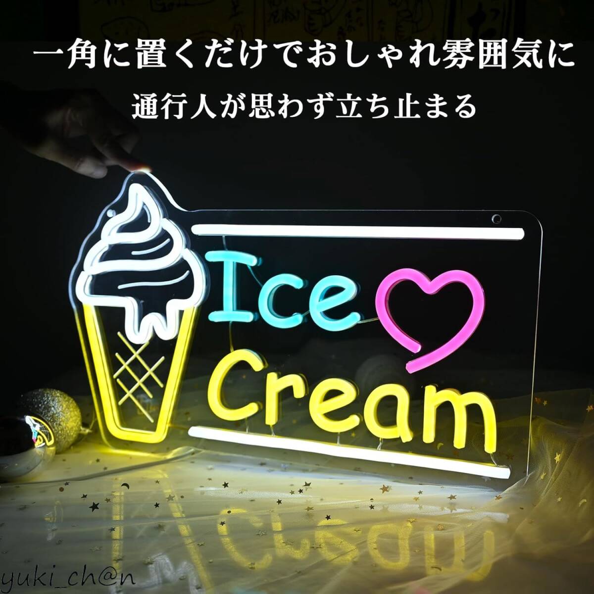 - アイスクリームネオンサイン 装飾 アイスクリーム看板 LEDネオン看板 光る看板 アイスクリーム屋 自宅 インテリア 開店祝い 約40×24㎝