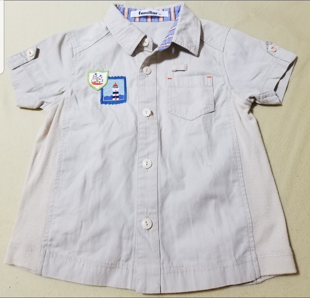 - ファミリア 90cm 涼しい麻素材入り 半袖シャツ アップリケ付き