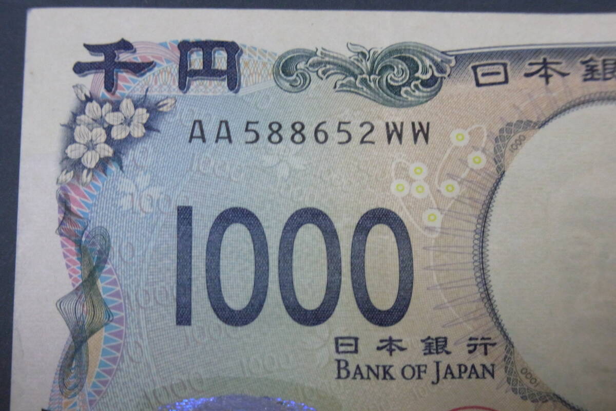 - 【新紙幣】AA−WW券 北里柴三郎 1000円 新札1枚 AA588652WW 若干の折り目あります