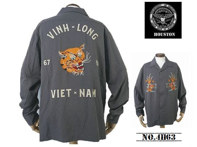 > 【送料無料 30%OFF 】HOUSTON ヒューストン 刺繍スーベニアシャツ・スカシャツ 「 TIGER 」柄 NO.41163 CHARCOAL_Lサイズ