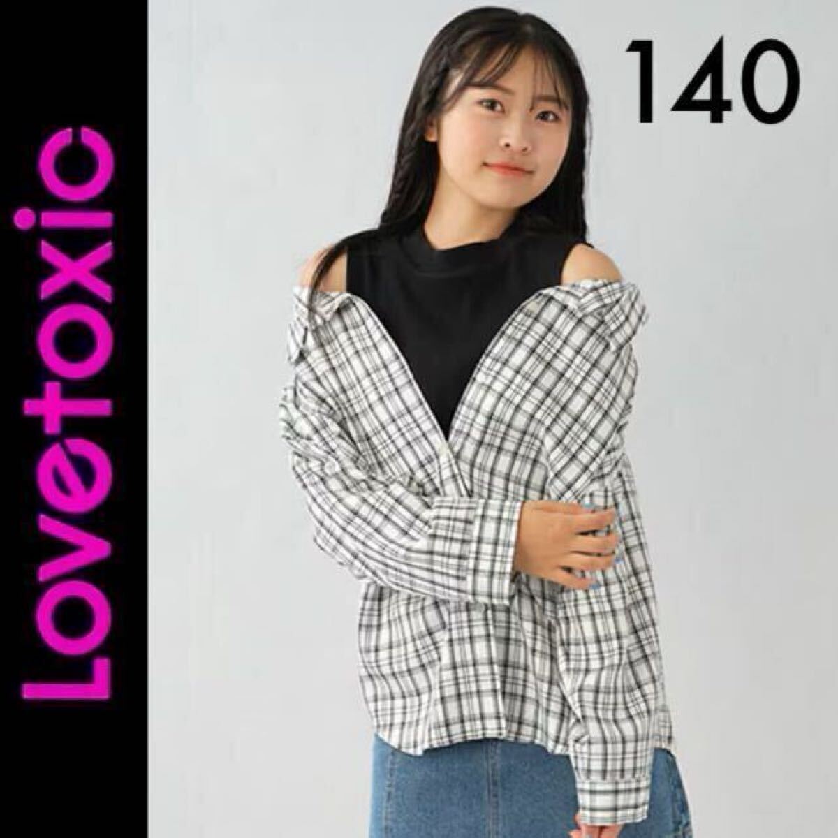 > 新品タグ付き☆Lovetoxic ラブトキシック レイヤード風シャツ 140 白 ホワイト チェック