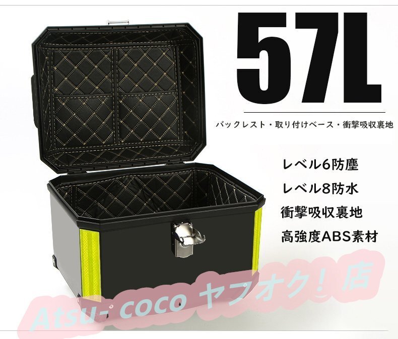 - リアボックス 57L バイク用 防水 防塵 取付ベース付 バイクボックス トップケース 高強度 752