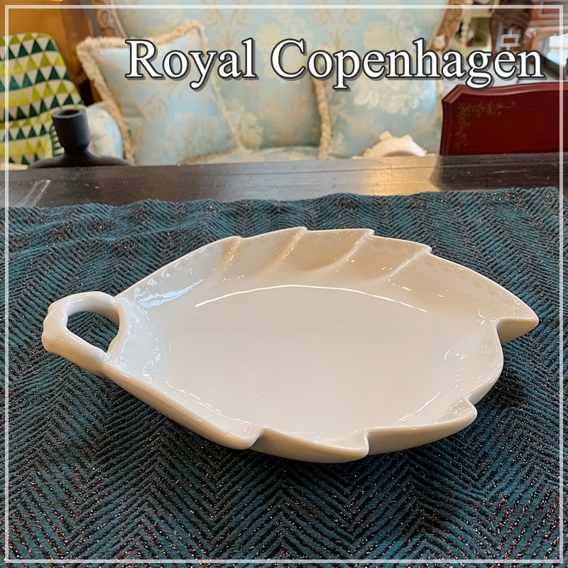 > 【福岡】ROYAL COPENHAGEN ホワイトフル-テッド ハーフレース プレート リーフディッシュ 皿 デンマーク【ME0813-5】
