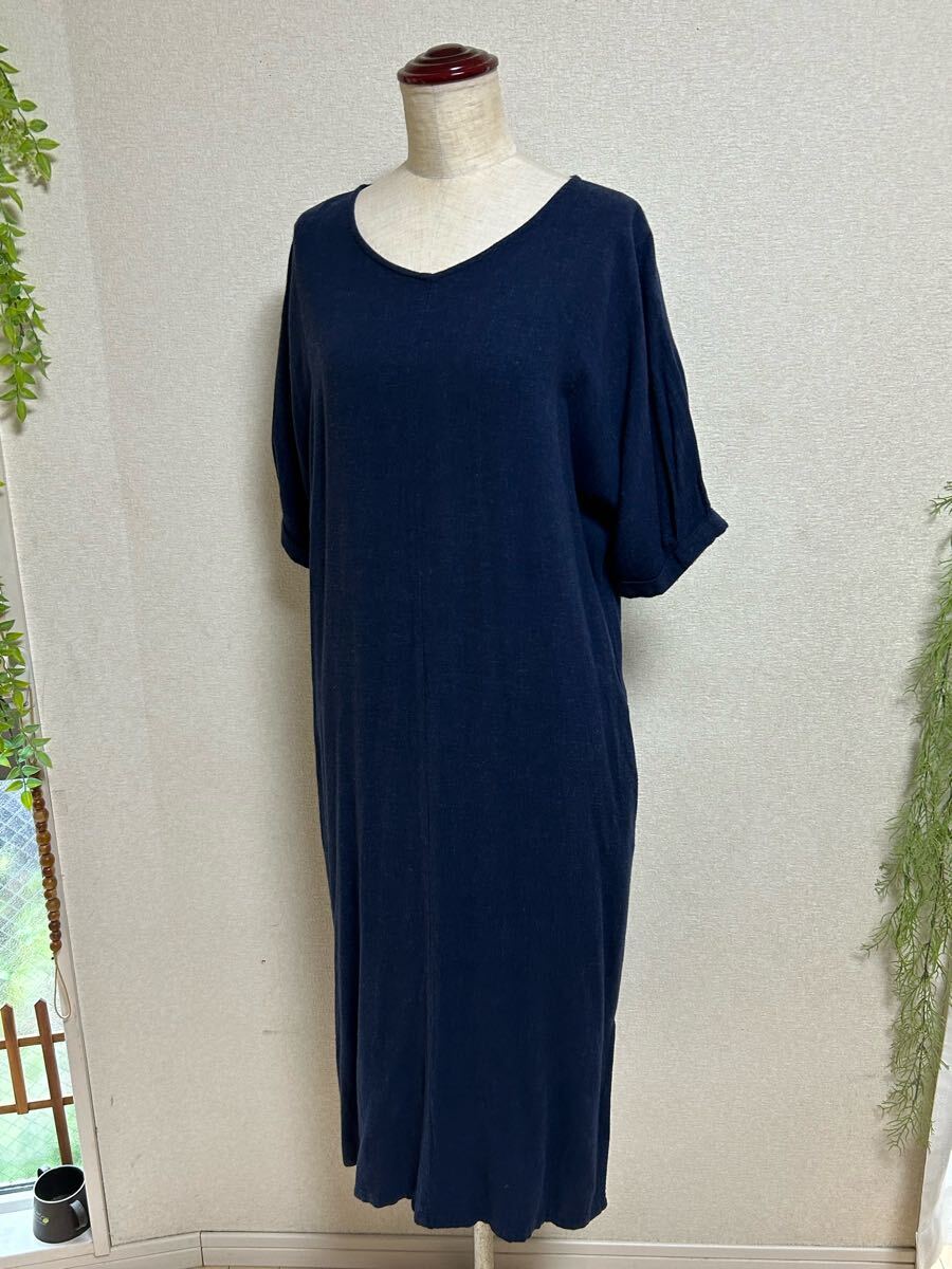 - 【samansa Mos2★サマンサモスモス】レーヨン/リネン混ワンピース・両サイドスリット入り・ネイビー