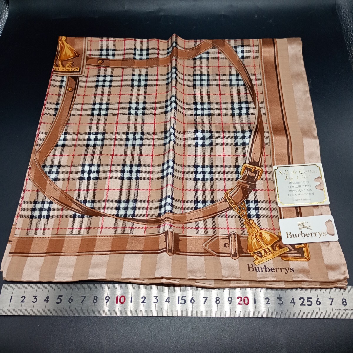 - BURBERRYS バーバリー ハンカチ 大判 シルク混 ベージュ チェック no.3020