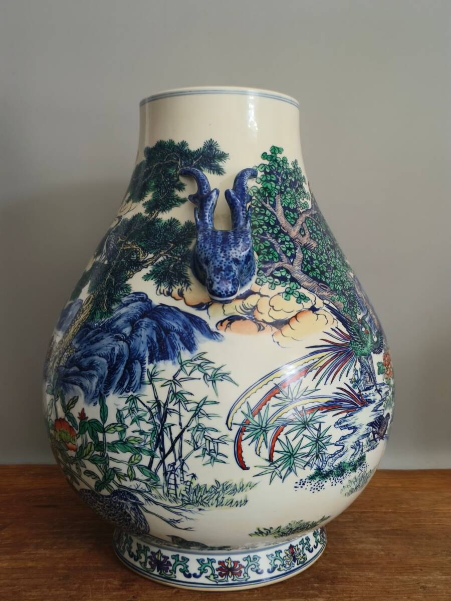 > 多宝閣 ■ 202136 中国磁器 中国骨董【清朝雍正年間に作られたファミーユローズ鹿頭花瓶。】工芸品 施釉陶 陶芸 置物 收藏品 孤品