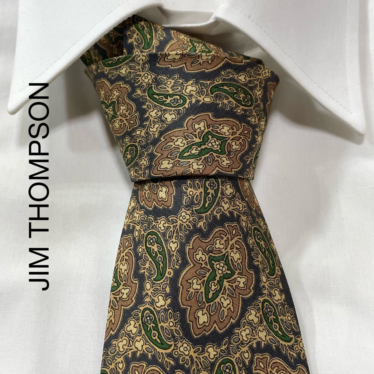 - JIM THOMPSON ジムトンプソン ペイズリー シルク ネクタイ グレー イエロー グリーン ライトブラウン TG2050