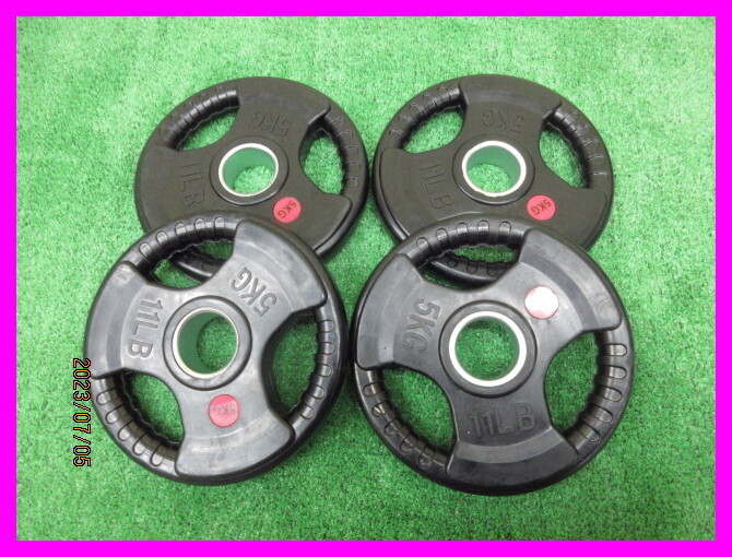 - ★全国送料無料★新品★オリンピックシャフト用 ウエイトプレート ラバープレート 50mm 5kg 4枚 合計20kg セット 筋トレ バーベル★415