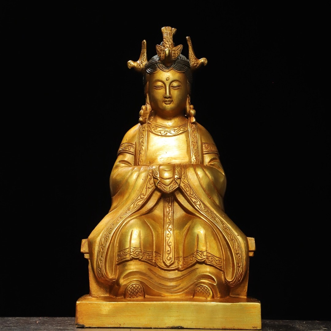 - 【超珍館蔵】銅製 塗金 王母娘娘像 仏像 宗教 仏教古美術 供養品 古賞物 古董品 古美術品 時代物 旧家蔵出 稀少珍蔵品