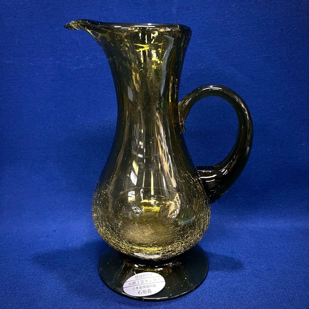 石垣島 琉球グラス ピッチャー 高さ20cm 水注 水差 華道具 インテリア レトロ ヴィンテージ 当時物 (06137並