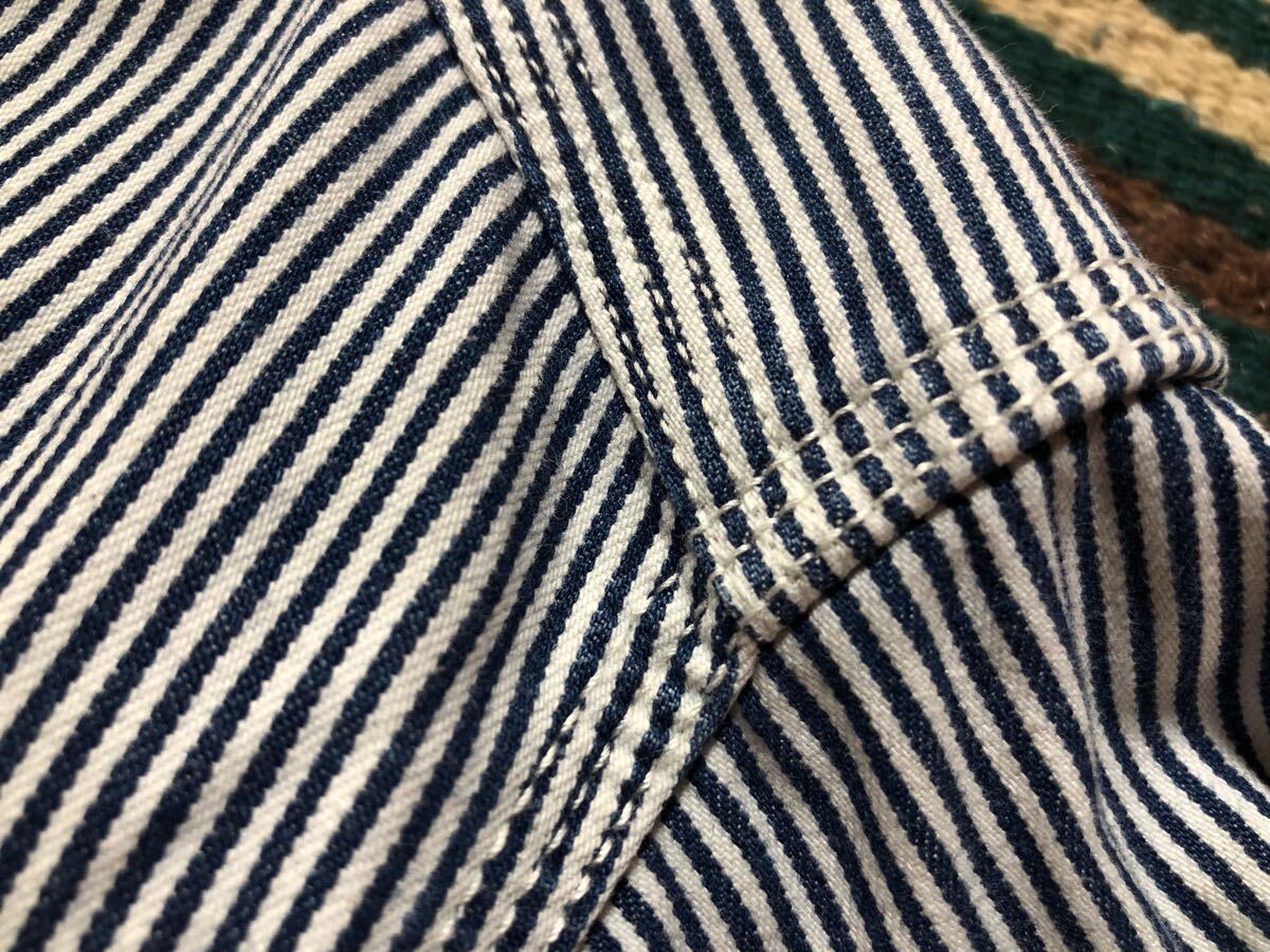 > アメカジ 定番 ユニクロ ヒッコリー ワークシャツ トリプルステッチ 猫目ボタン マチ付き ビンテージ 古着 F&E フェード OLD Lサイズ USA