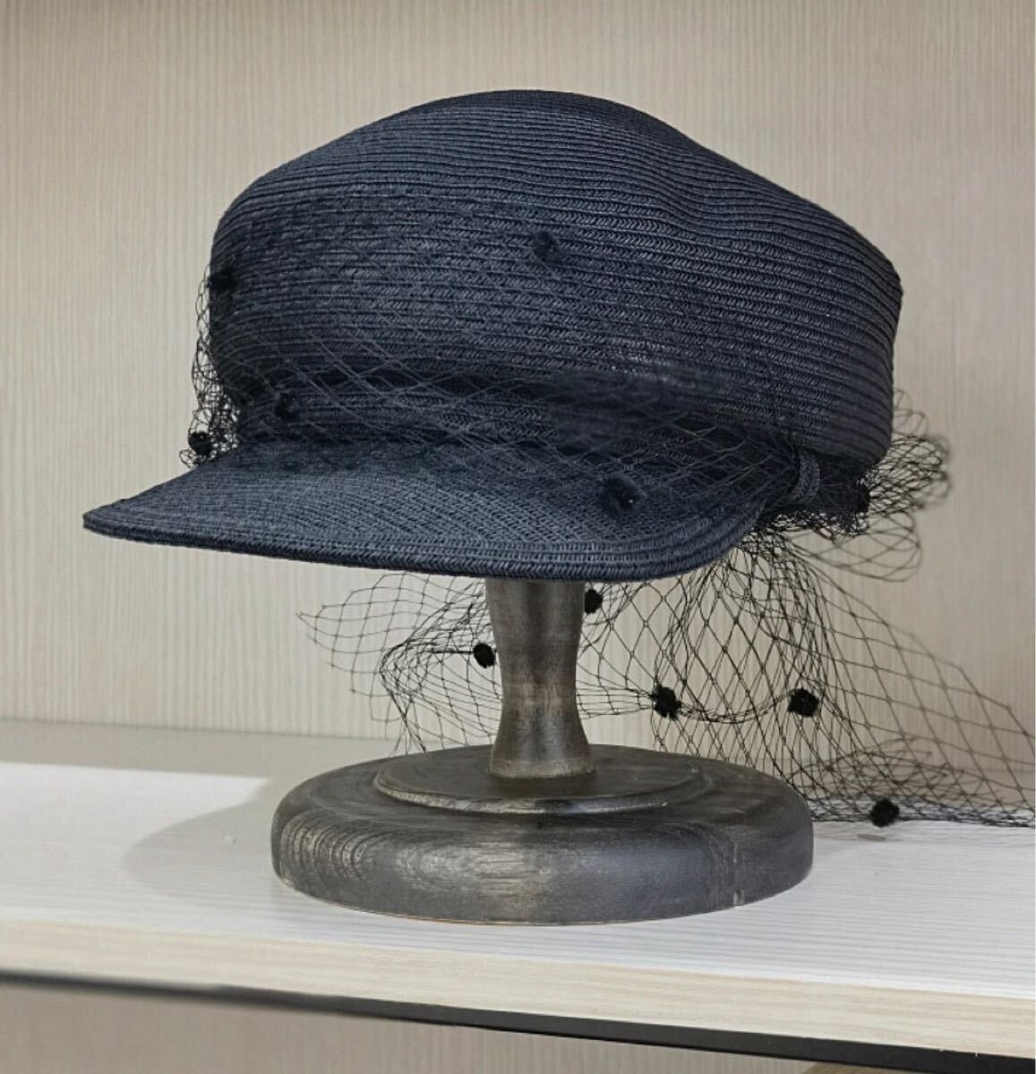 - 新品!ドット チュール キャスケット ブラック 帽子 ストローハット 上品