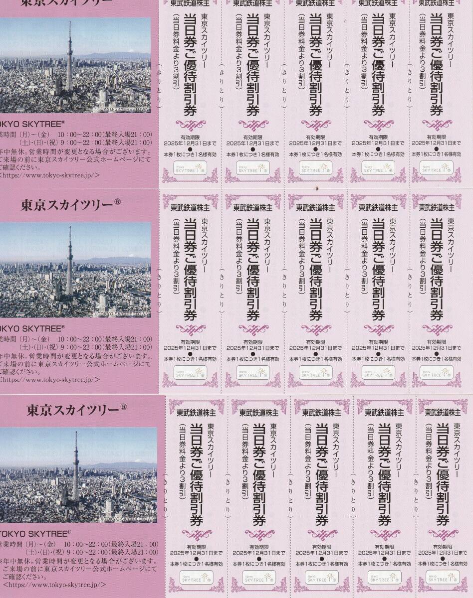 - 送料85円~★東武鉄道★株主優待割引券★東京スカイツリー★当日券ご優待割引券★15枚セット★即決