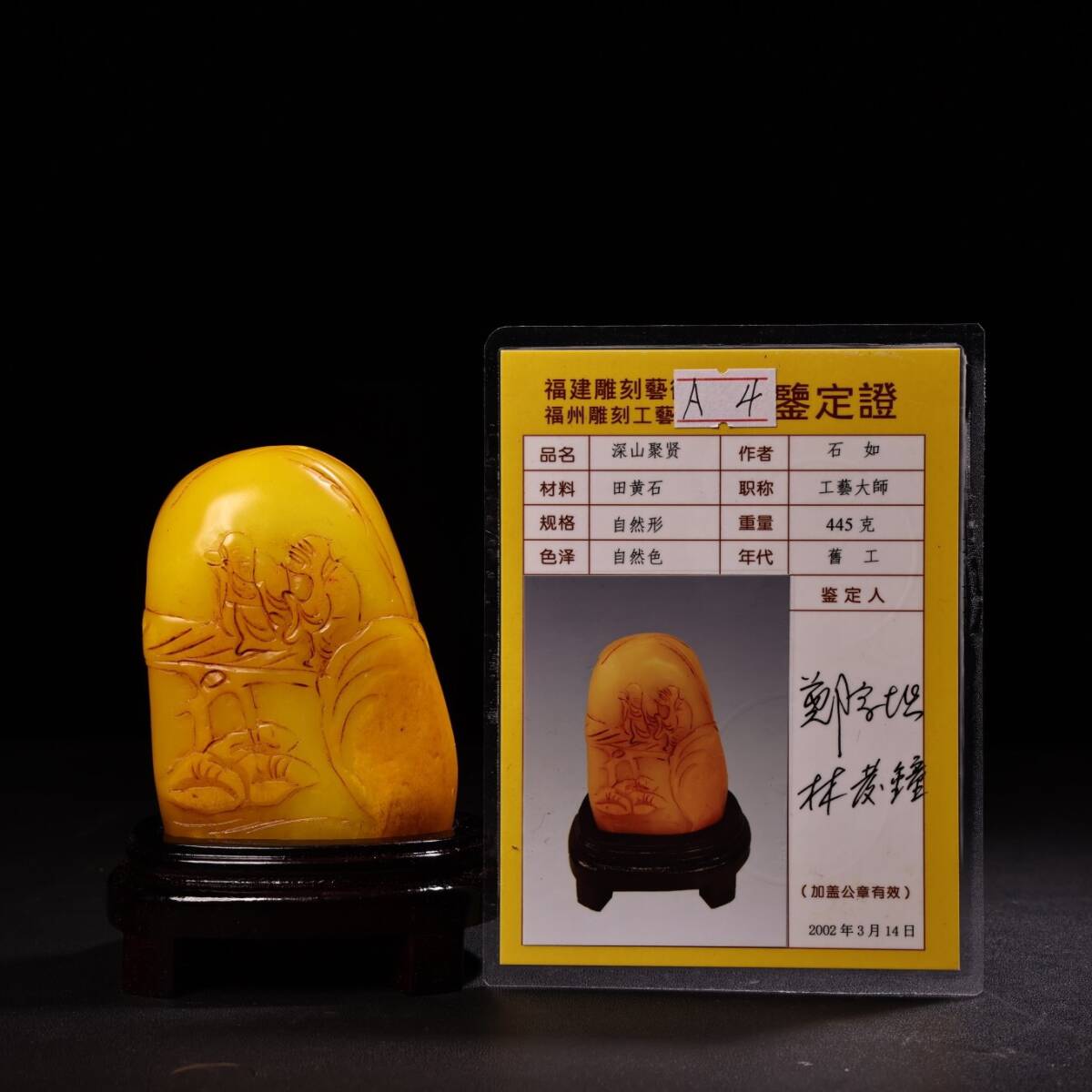 - 蔵友旧蔵出 寿山石 田黄石 細密彫 深山聚賢紋 印章 箱付 貴重品 稀少物品 置物 賞物 中国時代美術品