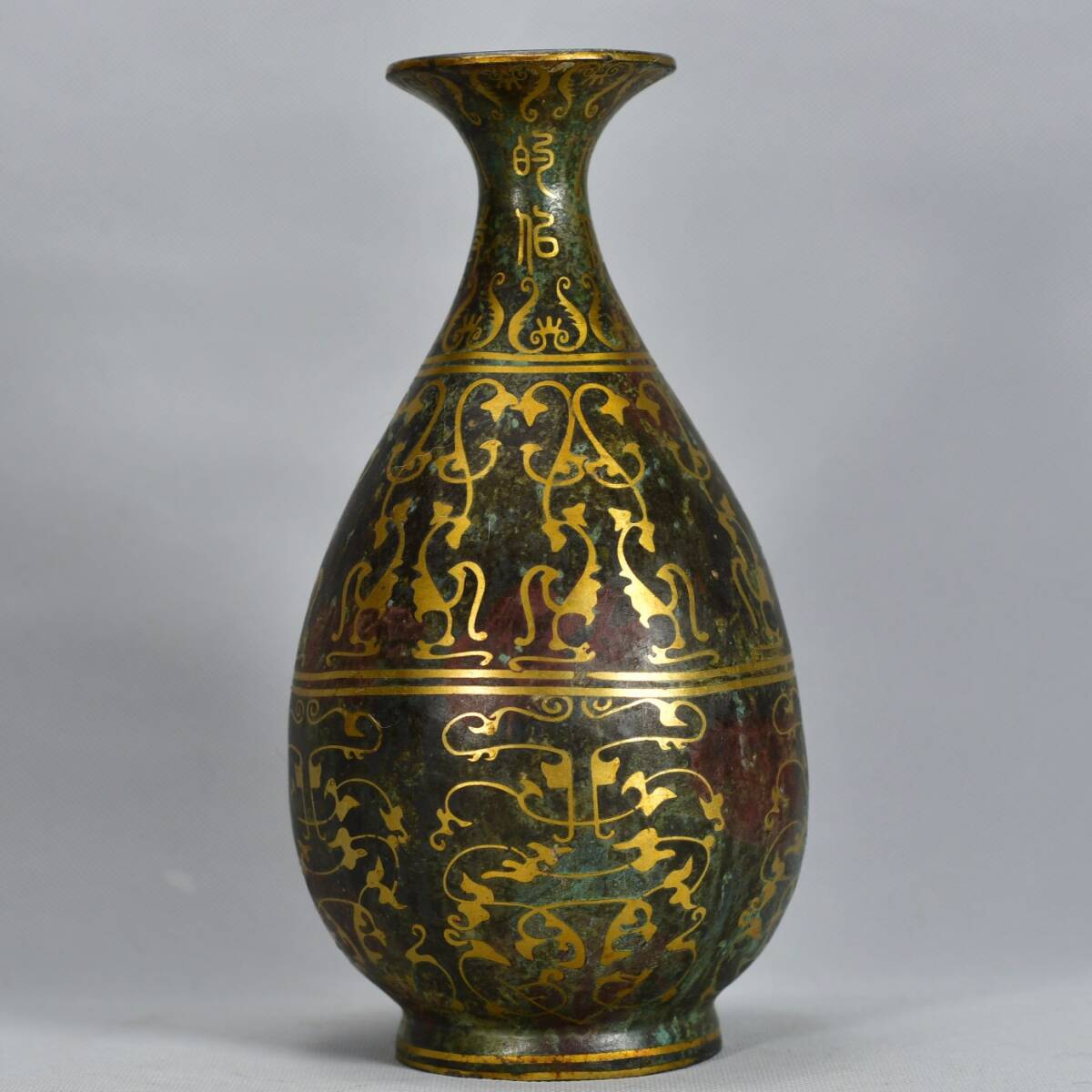 - 蔵友旧蔵出 漢 青銅作 錯金 圓瓶 希少珍品 貴重品 置物 古賞物 中国古玩 中国古美術品 館蔵品