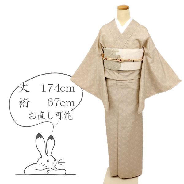 > 【小紋】 単衣 本しぼ絣十日町お召 伝統工芸士白川貞夫 麻の葉 正絹着物 KY5-21