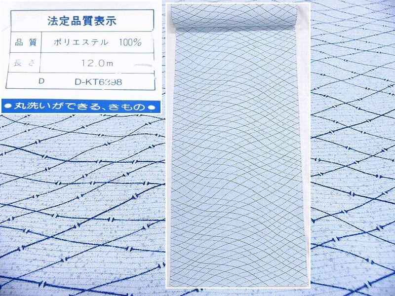 > アウトレット 盛夏用 落ち着いた色使い ポリエステル絽の小紋反物 薄水色 未仕立て・わけあり品