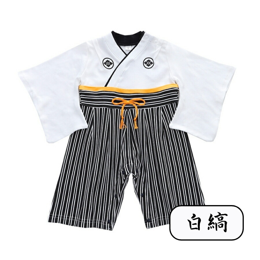 - 白縞 90cm ベビー服 和装 袴 ロンパース 縞 亀甲 記念撮影 フォーマル 着物 子供服 男の子 七五三 端午の節句 お食い初め お宮参り