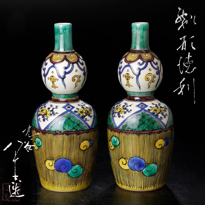 - ★【古美味】初代徳田八十吉造 瓢形徳利 一対 茶道具 保証品 XN7w