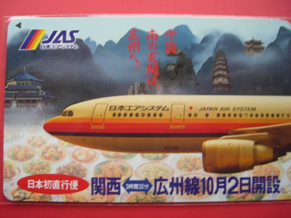 - 日本エアシステム JAS 関西⇔広州線 開設 未使用テレカ