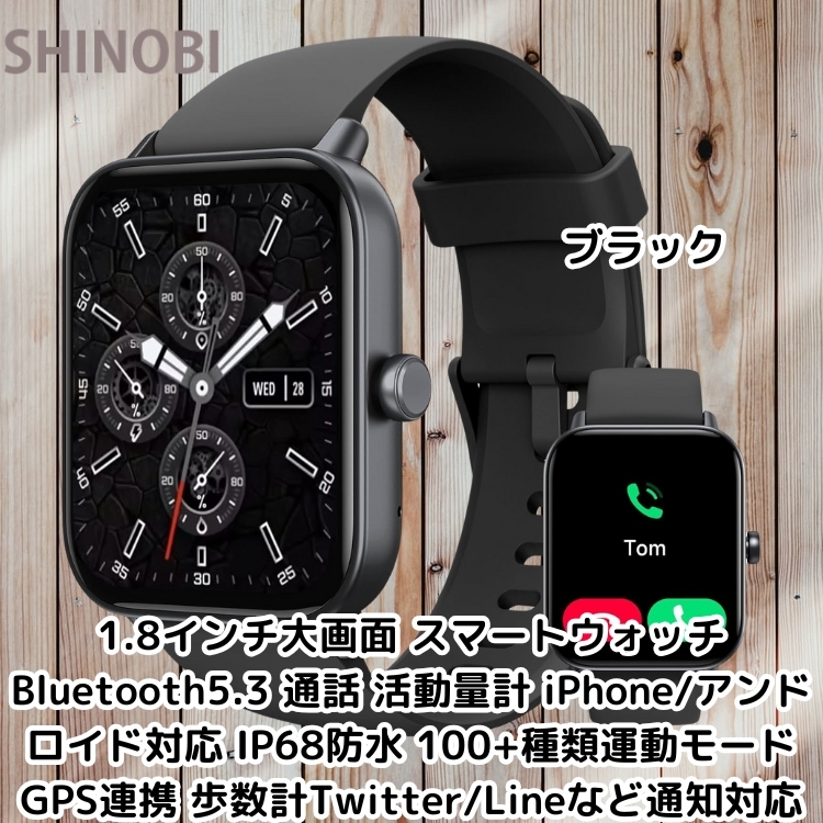 > 1.8インチ大画面 スマートウォッチ Bluetooth5.3 活動量計 通話/sns通知 iPhone/アンドロイド対応 IP68防水 100種類モード GPS連携 歩数計