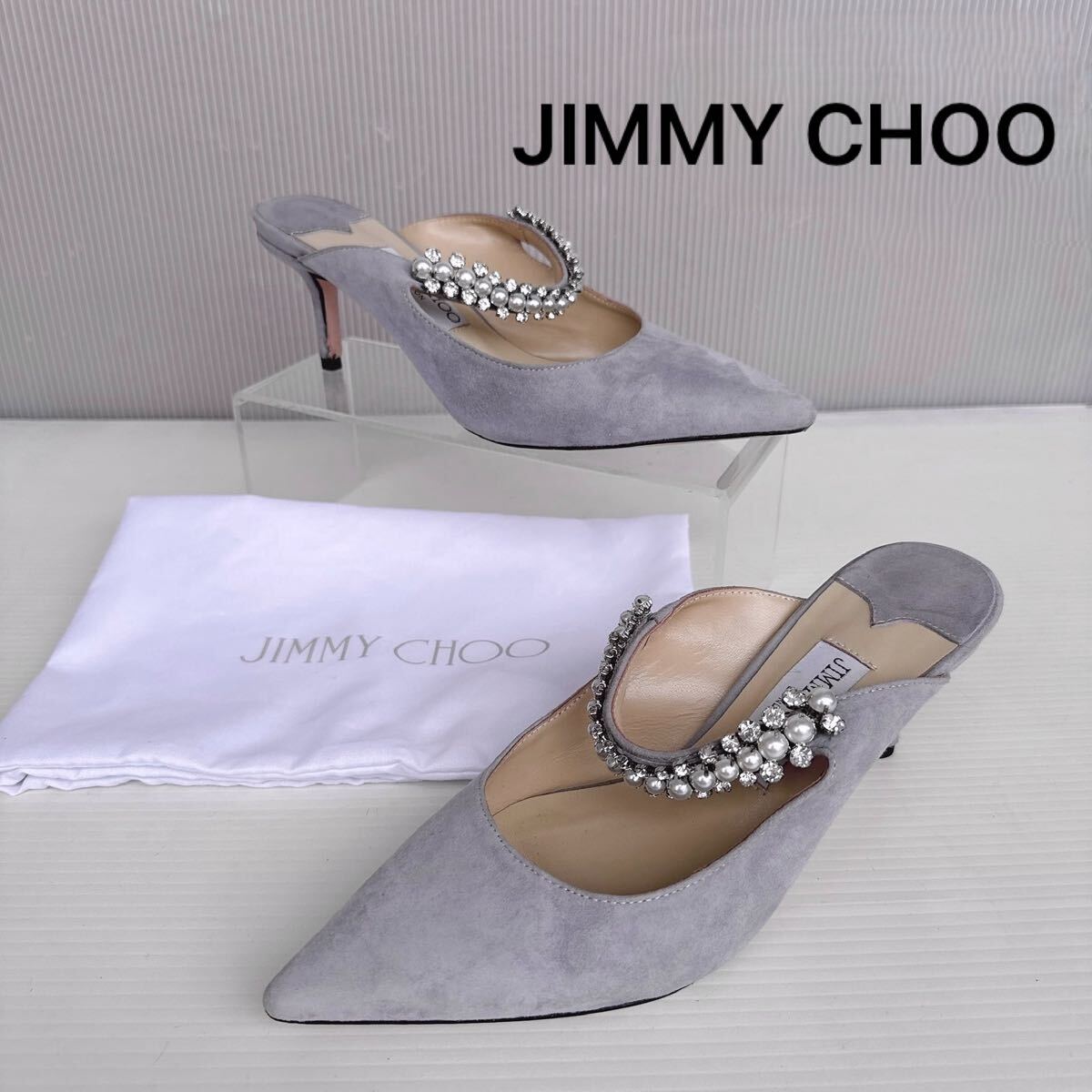 > JIMMY CHOO ジミーチュウ BING65 パール クリスタル ビジュー ローヒール パンプス サンダル ミュール レーディス シューズ 靴 38 グレー