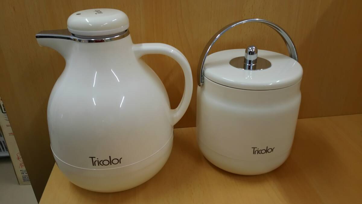 - 【丸-1035】(MZ)トリコロール/魔法瓶ポット/アイスペール/ペアセット/トング欠品/昭和レトロ(yu)