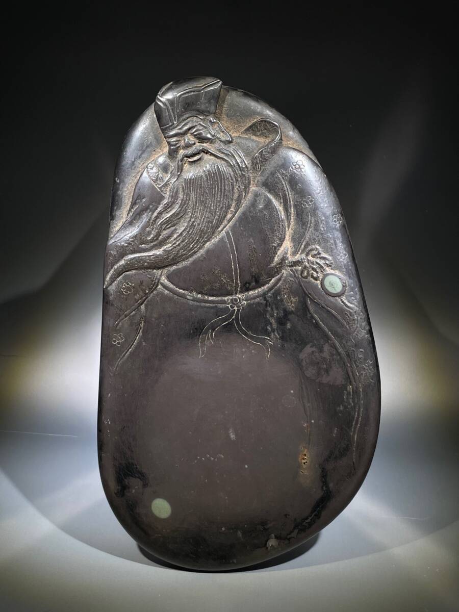 - 【超珍館蔵】安石紋硯台 端硯 汪承沛在銘 文房具 書道品 置物 賞物 古賞物 古董品 古美術品 時代物 旧家蔵出 稀少珍蔵品