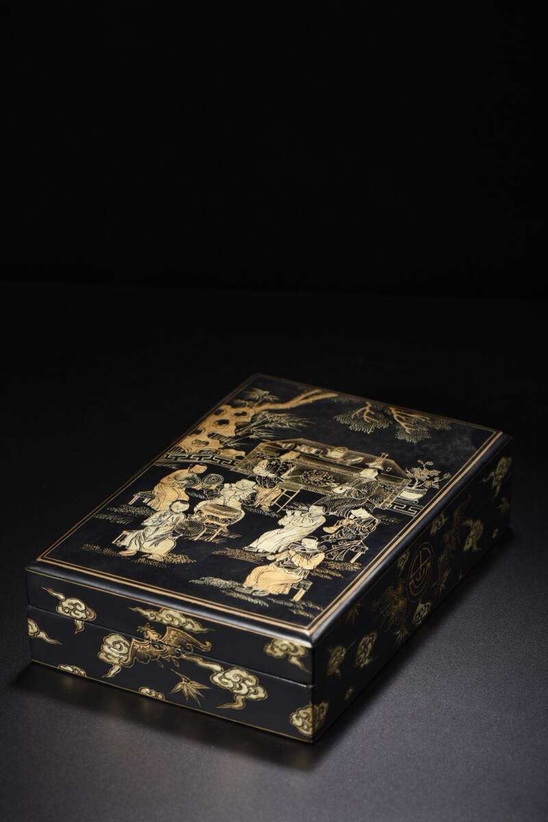 - 『館蔵珍品 木胎漆器彫 描真金 人物故事紋 首飾盒 置物 賞物』稀少珍蔵品 古賞物 貴重物品 収蔵品 中国古美術 時代物 古董品