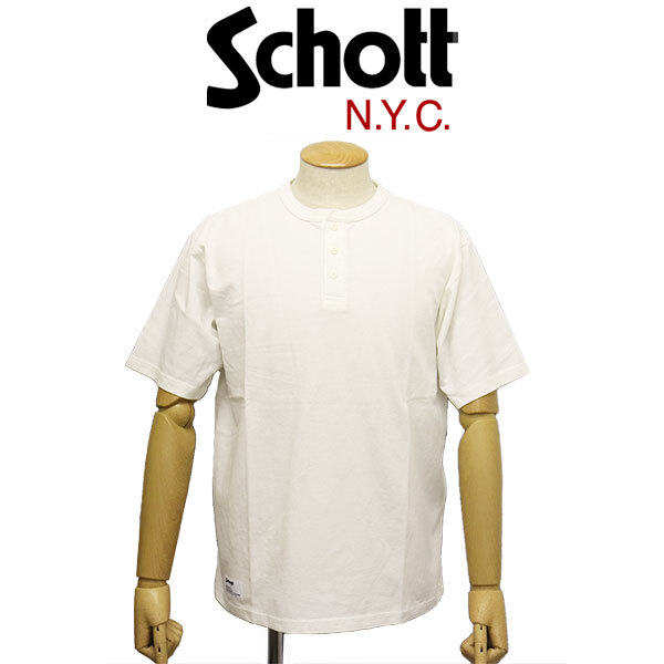 > Schott (ショット) 5934008 ピグメント加工 ヘンリーネック 半袖 Tシャツ 033OFFWHITE XXL