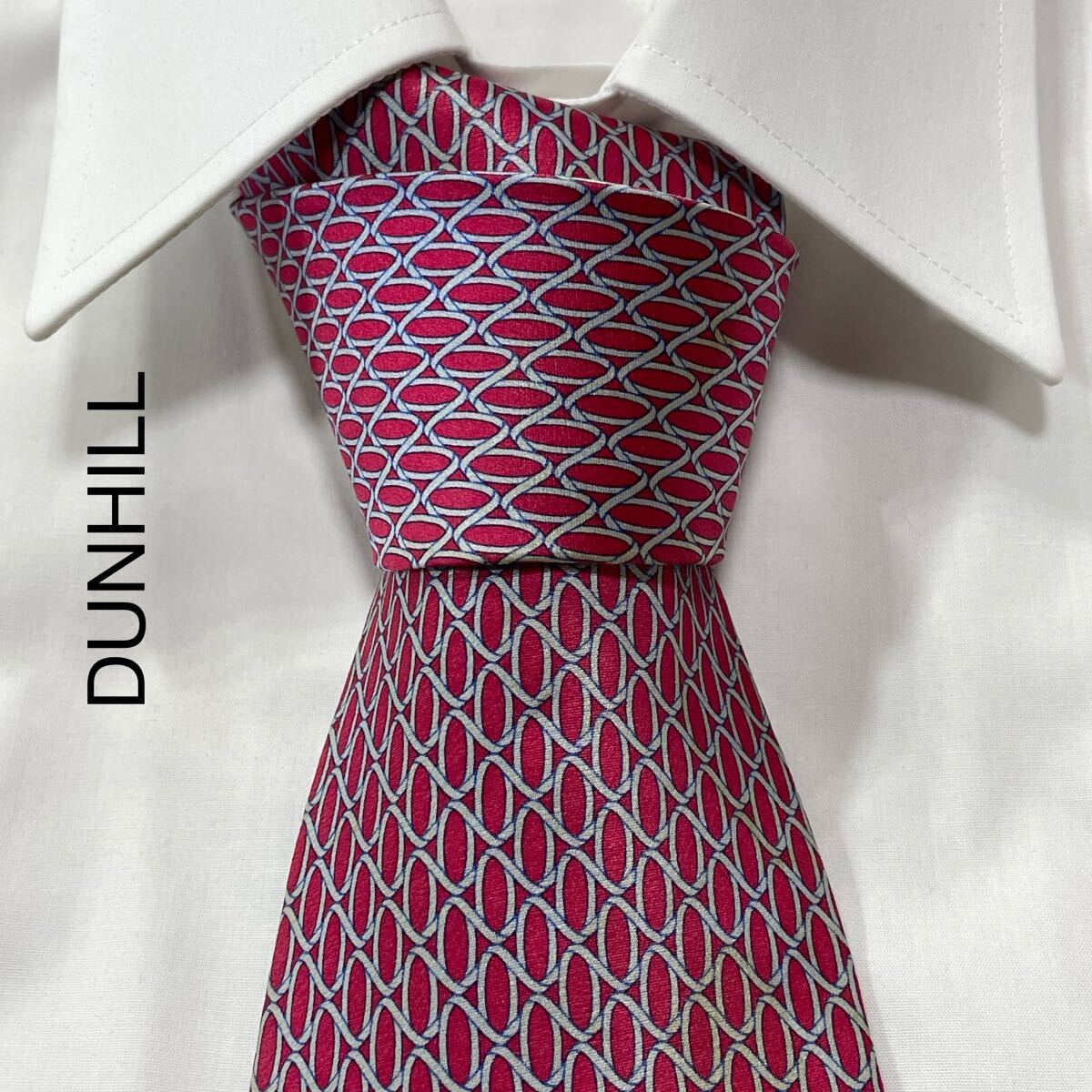 - DUNHILL ダンヒル パターン柄 ネクタイ レッド ブルー TG2385