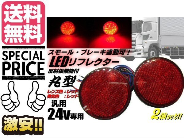 - 24V トラック バス 丸型 LED リフレクター 赤 レッド スモール バックランプ 連動 マーカー メール便送料無料/3
