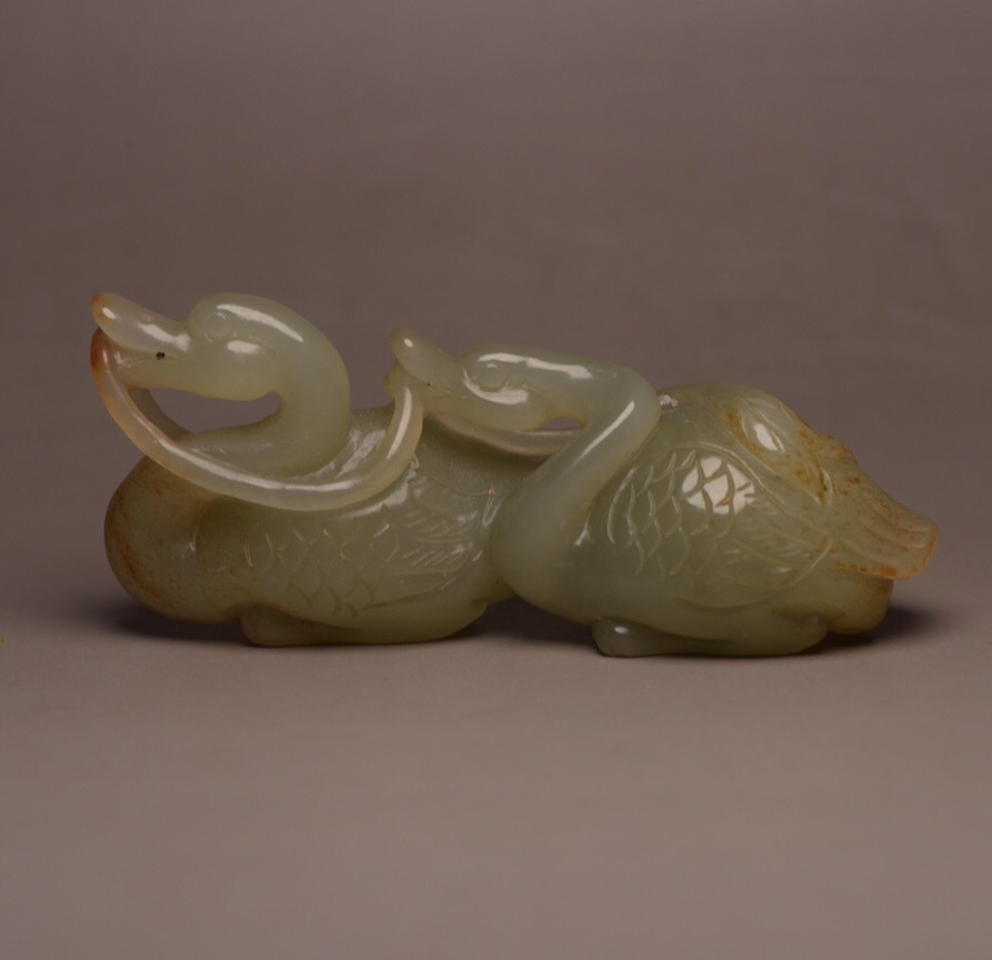 - 『館蔵珍品 和田玉製 細密彫 鵝如意 置物 賞物』稀少珍蔵品 古賞物 貴重物品 収蔵品 中国古美術 時代物 古董品